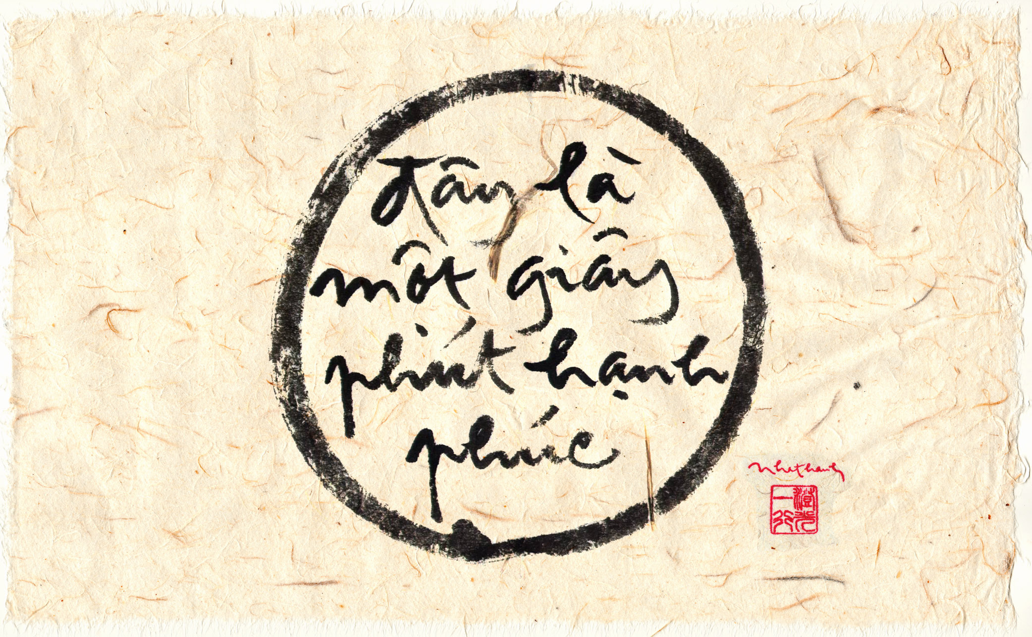 Trong thư pháp của tôi có mực, trà, hơi thở, chánh niệm và sự tập trung. Đây là thiền. Đây không phải là công việc. Giả sử tôi viết ‘thở; cùng một lúc tôi đang thở. Được sống là một điều kỳ diệu và khi bạn hít thở vào trong tâm trí, bạn chạm vào điều kỳ diệu của điều được sống. | Thích Nhất Hạnh